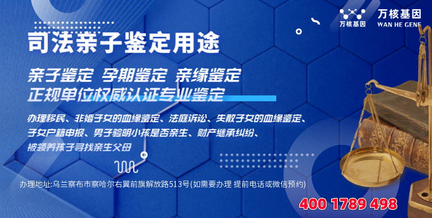 在察哈尔右翼前旗,可快速办理:上户口做亲子鉴定、亲子关系鉴定、亲缘关系鉴定、个体识别鉴定等等亲子鉴定,察哈尔右翼前旗上户口做亲子鉴定办理地址:乌兰察布市察哈尔右翼前旗解放路513号(如需要办理 提前电话或微信预约)-预约电话:4001789498。